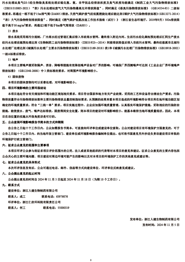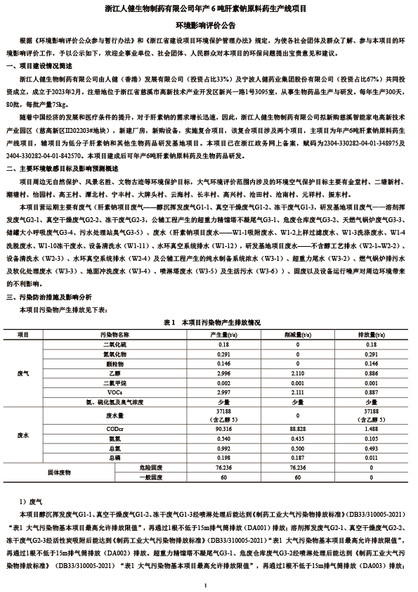 浙江人生就是博生物制药有限公司年产6吨肝素钠原料药生产线项目环境影响报告书公告